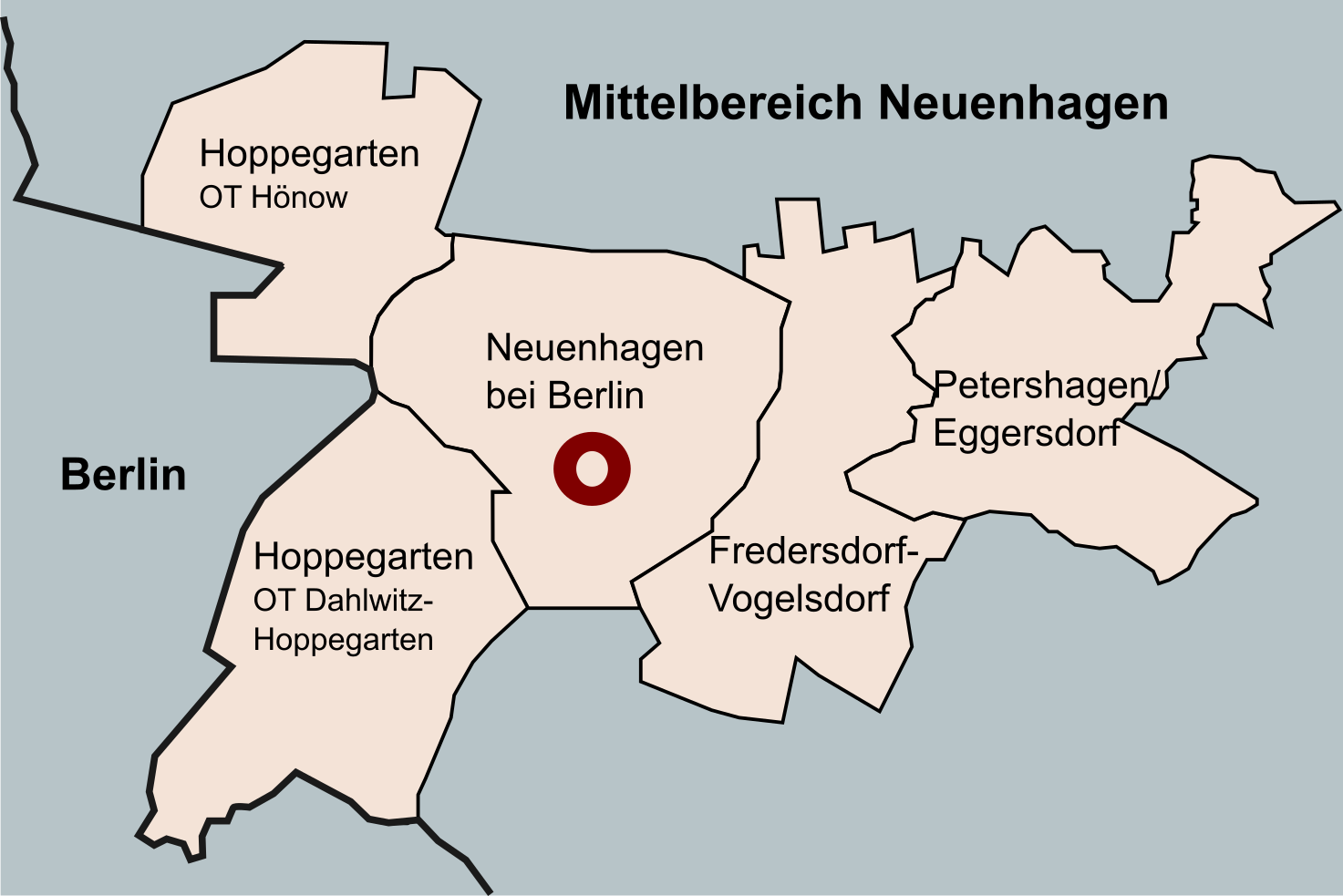 Die Gemeinden Neuenhagen, Hoppegarten, Fredersdorf-Vogelsdorf und Petershagen/Eggersdorf gehören seit Inkrafttreten des LEP B-B im Mai 2009 zu dem Mittelbereich des neuen Mittelzentrums Neuenhagen. Die Kommunen verständigten sich unmittelbar nach Ausweisung des Mittelzentrums darauf, eine interkommunale Kooperation aufzubauen und damit den Grundsätzen 2.10 und 2.12. des LEP B-B zu entsprechen. Ziel ist es, in den wesentlichen Bereichen der gehobenen mittelzentralen Daseinsvorsorge die Entwicklungen abzustimmen und gemeinsam zu gestalten.