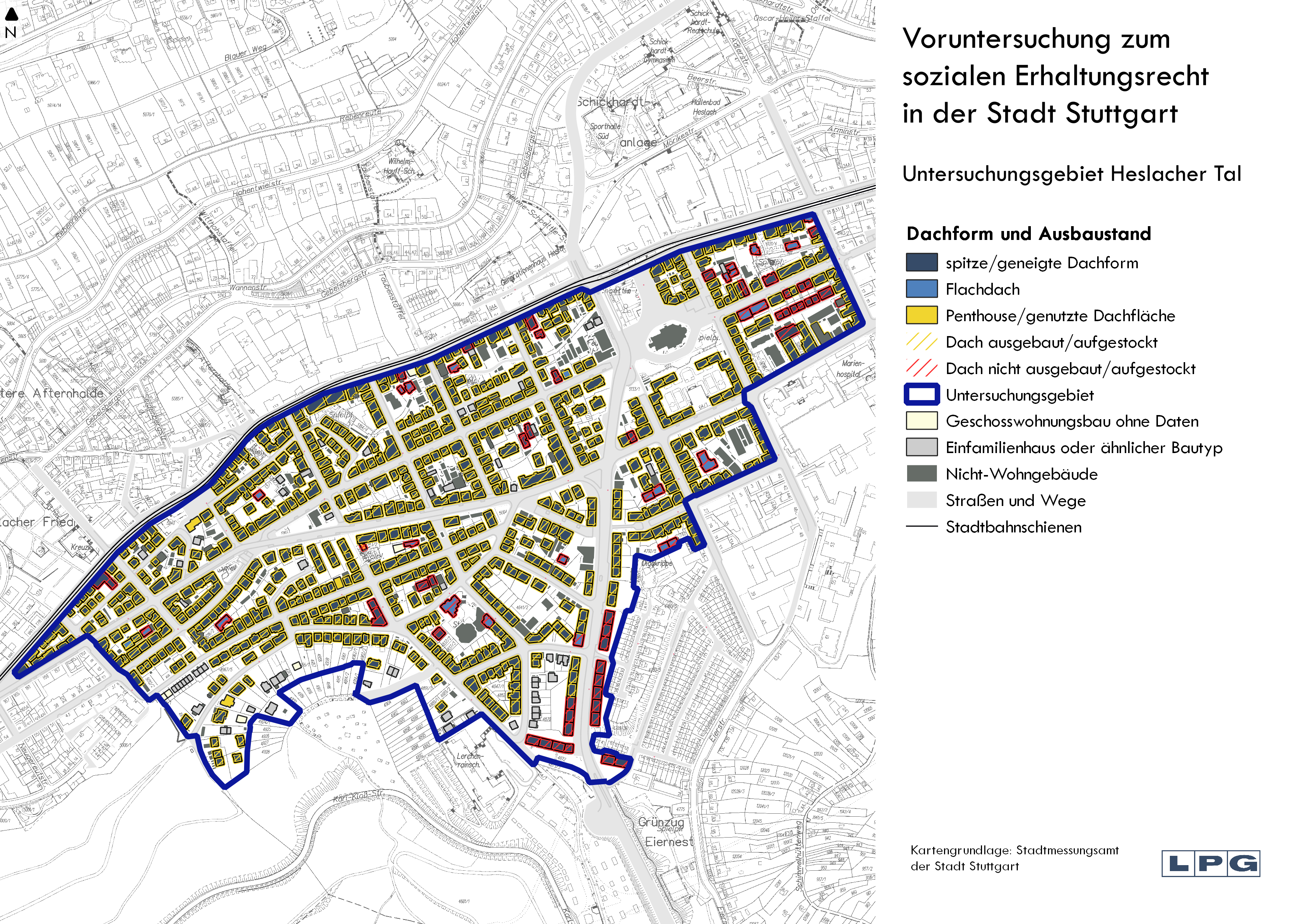 In diesen drei Gebieten wurde im Rahmen von Voruntersuchungen der Einsatz des sozialen Erhaltungsrechts durch die LPG mbH geprüft. Neben einer Haushaltsbefragung wurden statistische Daten zur Mietentwicklung und dem Umwandlungsgeschehen ausgewertet und eine Vielzahl an Gesprächen mit Expert*innen geführt, die auf lokaler Ebene aktiv sind. Im Ergebnis der Voruntersuchung wurde die Festsetzung von drei sozialen Erhaltungsgebieten empfohlen. In den Gebieten Friedhofstraße und Seelberg lagen die Anwendungsvoraussetzungen für das soziale Erhaltungsrecht in einem Teilbereich des Untersuchungsgebiets vor. Im Heslacher Tal bestätigten sich die Anwendungsvoraussetzungen für das gesamte Untersuchungsgebiet. Die Ergebnisse wurden im jeweiligen Bezirksbeirat und dem Ausschuss für Stadtentwicklung und Technik der Landeshauptstadt Stuttgart präsentiert.